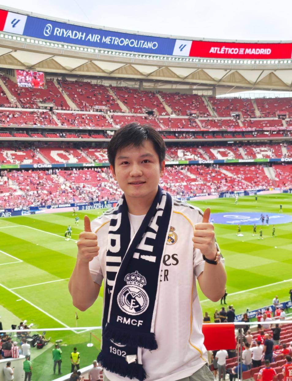 在马德里的大都会球场里,一场超刺激的马德里德比正激烈地进行着。场边有个特别的观众,吸引了好多人的目光,他就是中国乒乓球名将樊振东。这次他是受邀到现场看这场重要比赛的,还把自己在德比战里的感受写到了社交媒体上。听说这是樊振东第一次用“随队观战”的方式体验客场比赛。他写了:“感谢西甲联赛的邀请,第一次跟着皇马去客场比赛。”后来皇马2比5输给了马竞,不过樊振东还是在话里表达了对皇马的支持和信心。这场比赛对这位职业乒乓球运动员来说,不只是看个比赛,更说明他很爱足球。